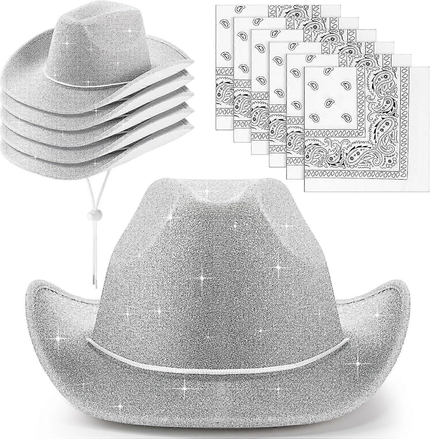 2025 Latest Model 12 Pcs Adult Cowboy Hat for Women Men Western Glitter Cowgirl
