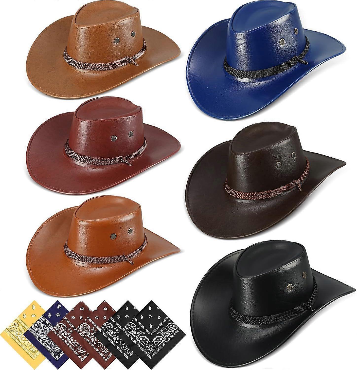 Sufficient Quantity: there are 12 pieces of things, including 6 pieces of cowboy hats and 6 pieces of bandanas for men coming in different colors, and the quantity is enough to meet your daily use and replacementProper Size: our cowboy hats are suitable for both men and women, and the size of hats is proper, and the head circumference is suitable for most people; Before buying, you can check in our size informationHow to Care: these cowboy hats are molded and cannot be folded; Folding will destroy the shape of the hat; We suggest you wash them by hand and hang them up when not wearing themWell Match: these cowboy hats and bandanas can match most boots, can be applied to cowboy clothing style, horseback riding, travel, travel, etc., most kinds of wear, simple design, light and strong, tight and loose versionWide Range of Applications: the cowboy hats are not only suitable for everyday use, but also suitable for a variety of occasions such as cowboy parties, cowboy themed parties, Halloween, Christmas, parties, birthdays, holidays, concerts, celebrations, weddings, dates, photo shoots and other special occasions
