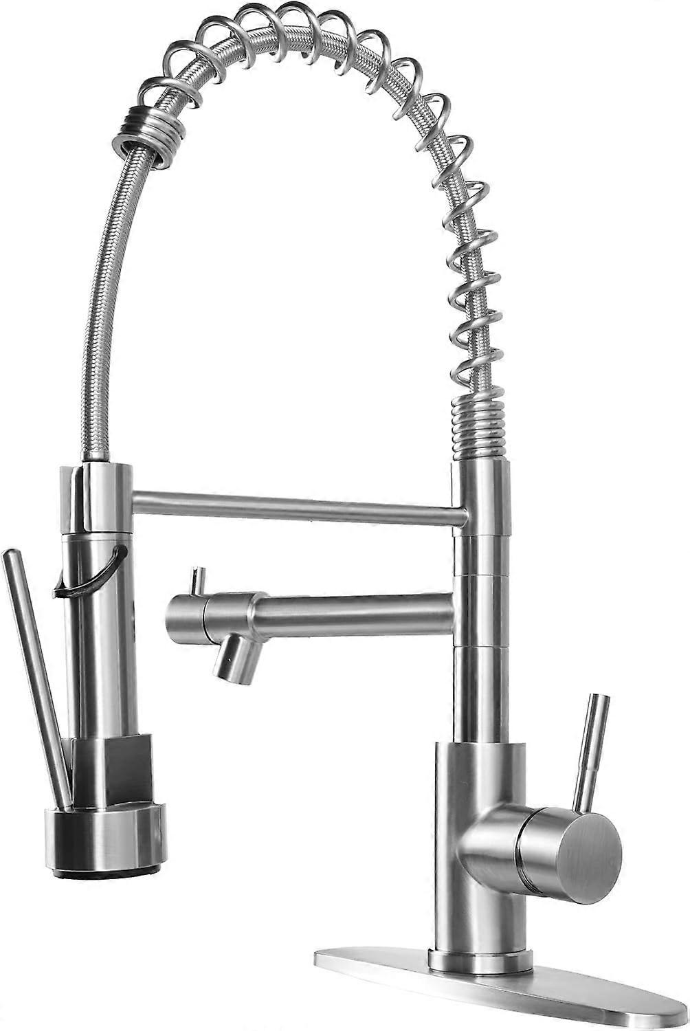 HIGH QUALITY: Superior corrosion & rust-resistant brushed nickel finish; enhances its properties, making it resistant to oil, fingerprints, rust, and abrasion. Top-quality ceramic cartridge provides a lifetime of drip free use2 DUAL FUNCTION SPOUT: The Spray mode delivers a powerful, high-pressure water flow that efficiently rinses away stubborn food debris, while the Stream mode offers a gentle water output, perfect for quick filling and promoting effective water conservationEASY INSTALLATION: Quick installation tool included, 3/8" H & C water hoses & 1/2" adapters included, more options. Warranty and Service:If you encounter any issues,VCCUCINE excellent customer support is always ready to assist you,ensuring your complete satisfactionDIMENSIONS: Sprayer height: 2.45" , Sprayer reach: 7.29" , Overall height: 17.32"EXCELLENT PERFORMANCE: high-arch 360-degree swivel spout ensure superior clearance for a variety of sink activities.