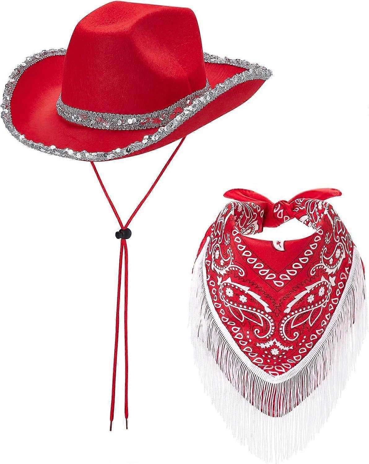 2025 Latest Model Western Cowboy Hat and Bandana Set Wide Brim with Sequins