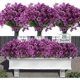 2025 Artificial Flowers Outdoor 20 Bundles Artificial Plants UV Resistant Fake Plants for Outdoors Outside Front Porch Purple