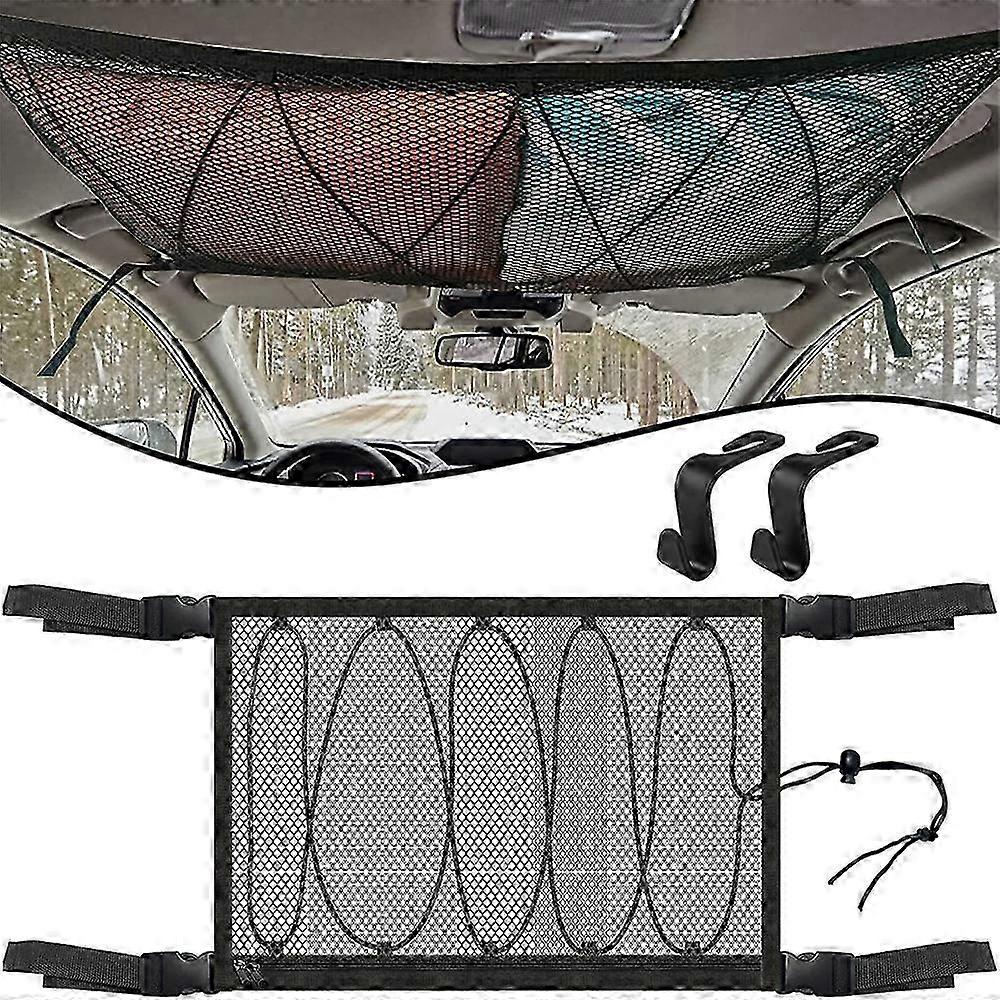 2025 Car roof net bag--(encrypted and thickened black) drawstring type--90X65CM + 2PCS-car small hook--black ordinary type