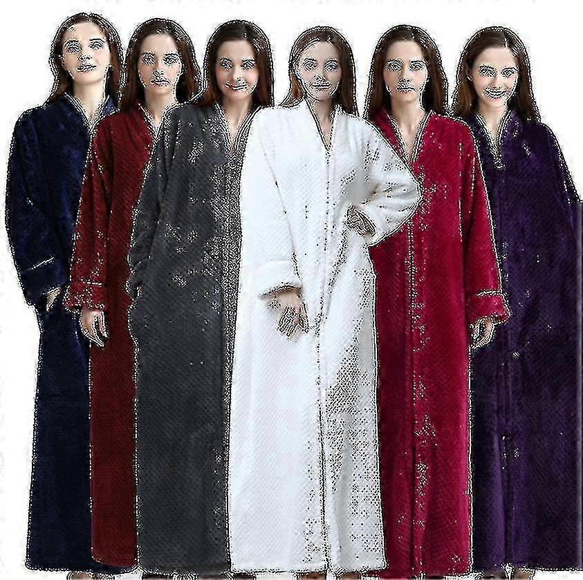 2025 Zipper Bathrobe For Womens Flannel Fleece Robes Winter Warm Housecoat Nightgown
