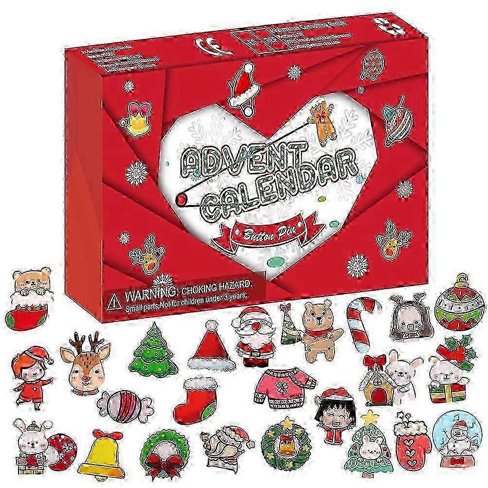 2025 Christmas Countdown Calendar 24Pcs Brooch Button Pin Advent Party Favors Classroom Prizes