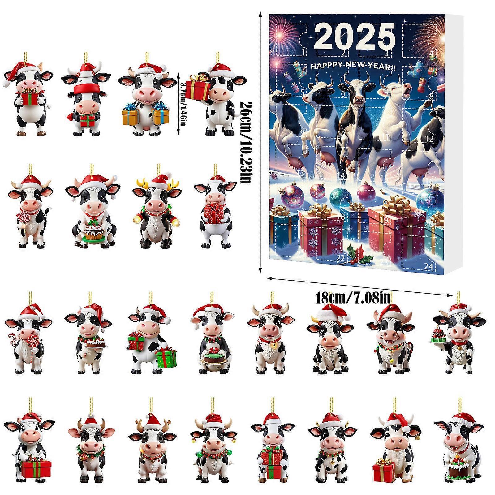2025 Christmas Countdown Blind Box Santa Cow Farm Christmas Tree Ornaments