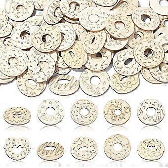 2025 100Pcs Unfinished Wood Cutouts Donut Wooden Shapes Dessert Wood Crafts