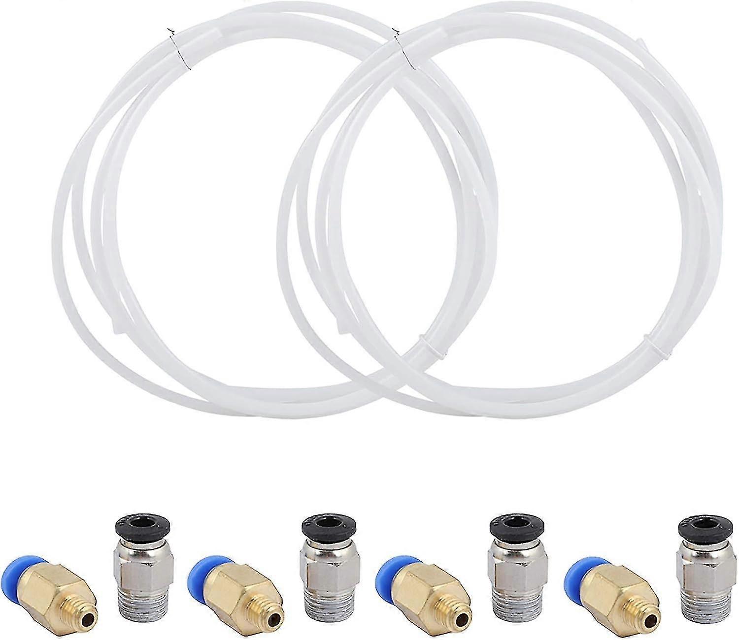 2025 2 Pieces PTFE Teflon Tube (1 Meters) + 4 Pieces PC4 M6 Quick Fitting + 4 Pieces PC4 M10 Straight Pne