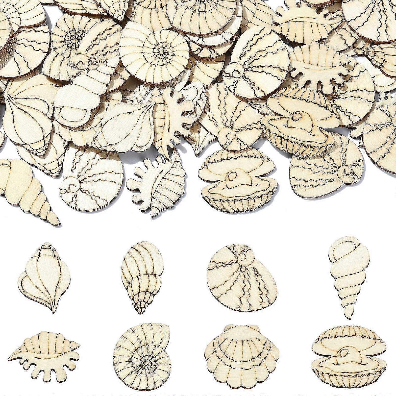 2025 200Pcs Unfinished Wooden Shell Shapes Blank Wood Slices Seashell Wooden Craft Embelishments