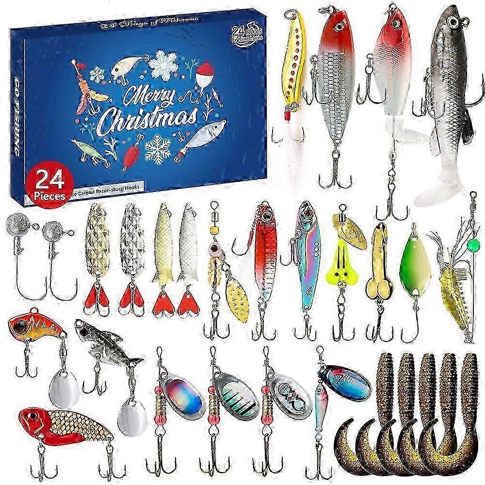 2025 24 Days Fisherman's Calendar for Advent, Christmas Fishing Advent Calendar Soft Bait Fishing Gift