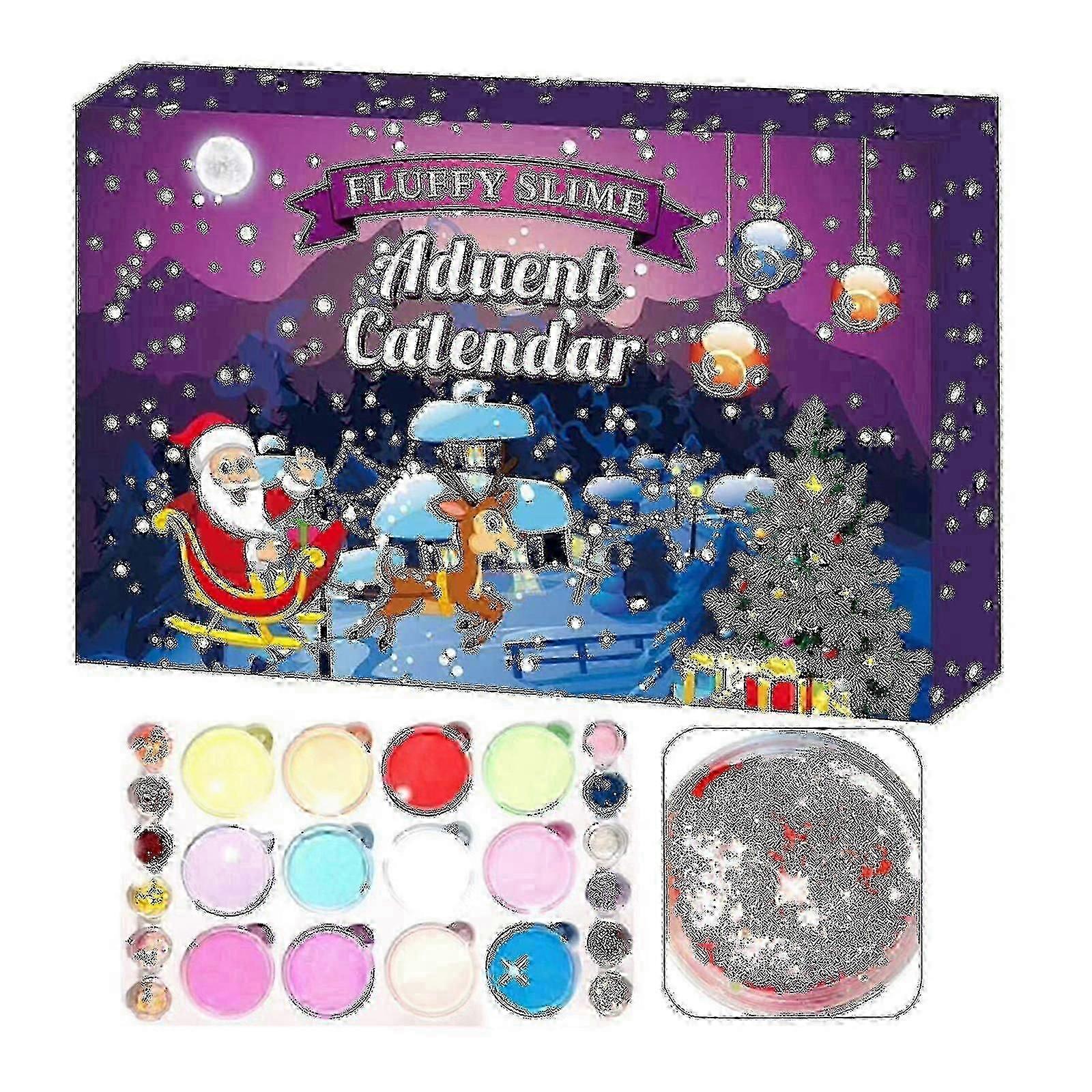 2025 24pcs/set Slime Advent Calendar Christmas Countdown Toys Christmas Decor Theme For Kids Teens--A