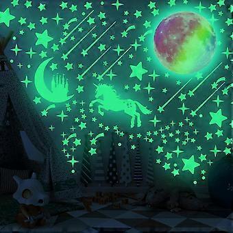 2025 296 Sheets of Glow-in-the-Dark Star Stickers and 1 Sheet of Colorful Moon, Glow-in-the-Dark Fluorescent Castle Wall Sticker