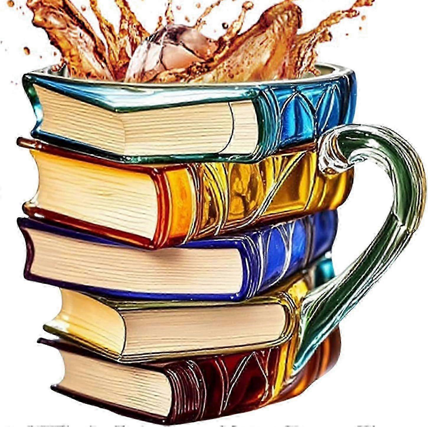 2025 3D Painted Books Mug - Novelty Stacked Books Coffee Cup Gift for Book Lovers