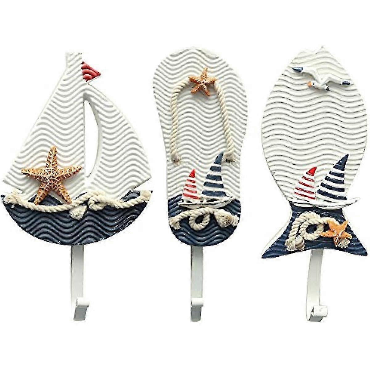 2025 3Pcs Large Art Hook Wooden Nautical Coat Hat Clothes Towel Wall Hooks Hangers Hanging Decoration Wall Mounted Key Hook Metal Home Decor Mediterra
