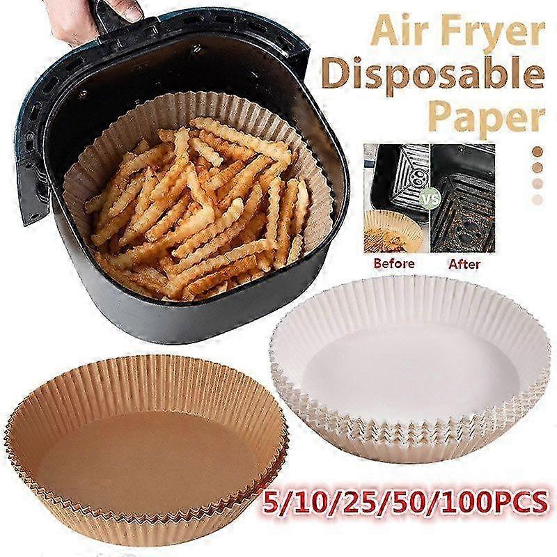 2025 5/10/25/50/100 PCS Air Fryer Disposable Paper Liner Air Fryer Natural Parchment Paper Non-Stick Air Fryer Liners Cooking Paper for Air Fryer for