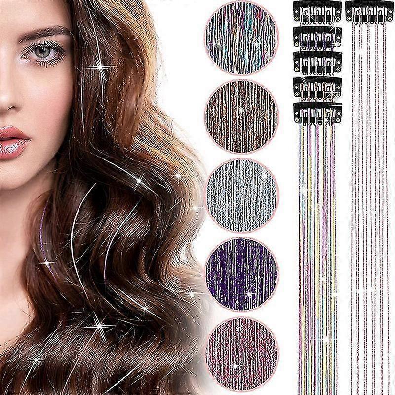 2025 6Pieces Glitter Hair Tinsel with Clip Dazzle Tinsel Hair Extensions