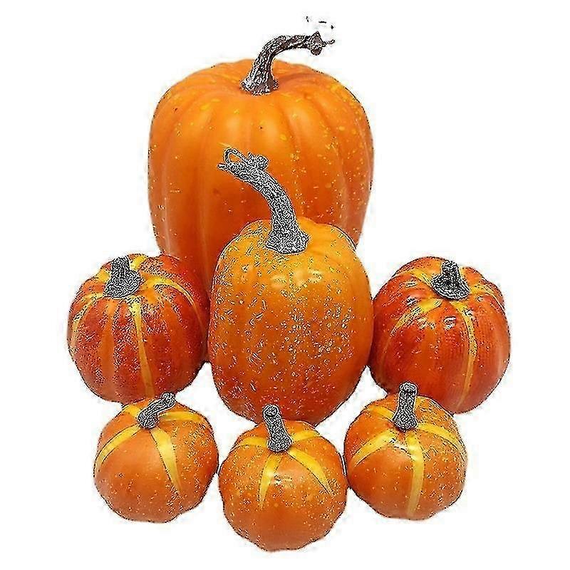 2025 7 Pcs Assorted Sizes Harvest Orange Artificial Pumpkins For Fall Halloween Thanksgiving Decorating Embellishing And Displaying