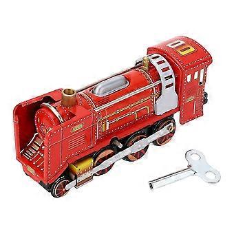 2025 Retro Red Wind-Up Train Toy Vintage Collectible Clockwork Mechanical Toy Creative Gift Photography Prop Tinplate Design Durable and Decorative Cl