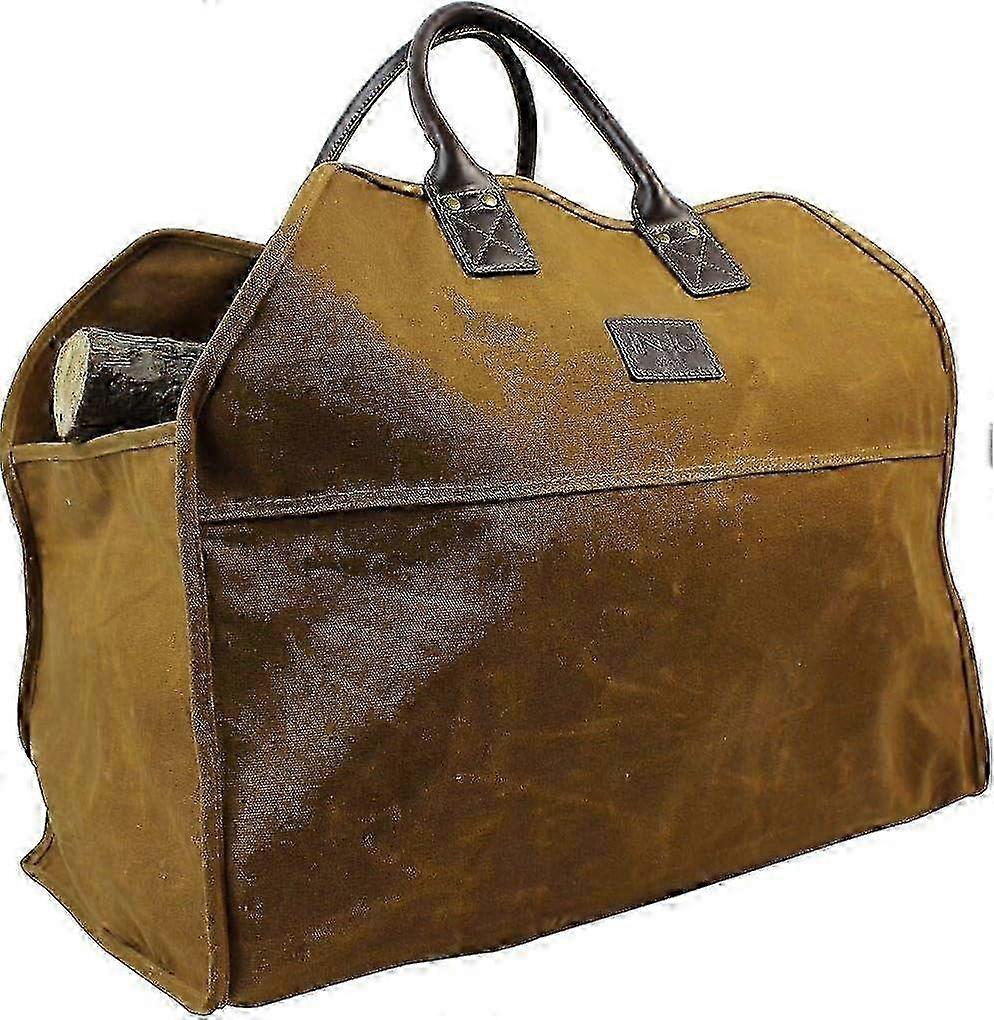2025 STAGE Heavy Duty Wax Canvas Log Carrier Tote,Large Fire Wood Bag,Durable Firewood Holder- Rust