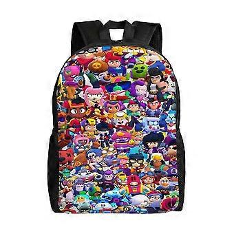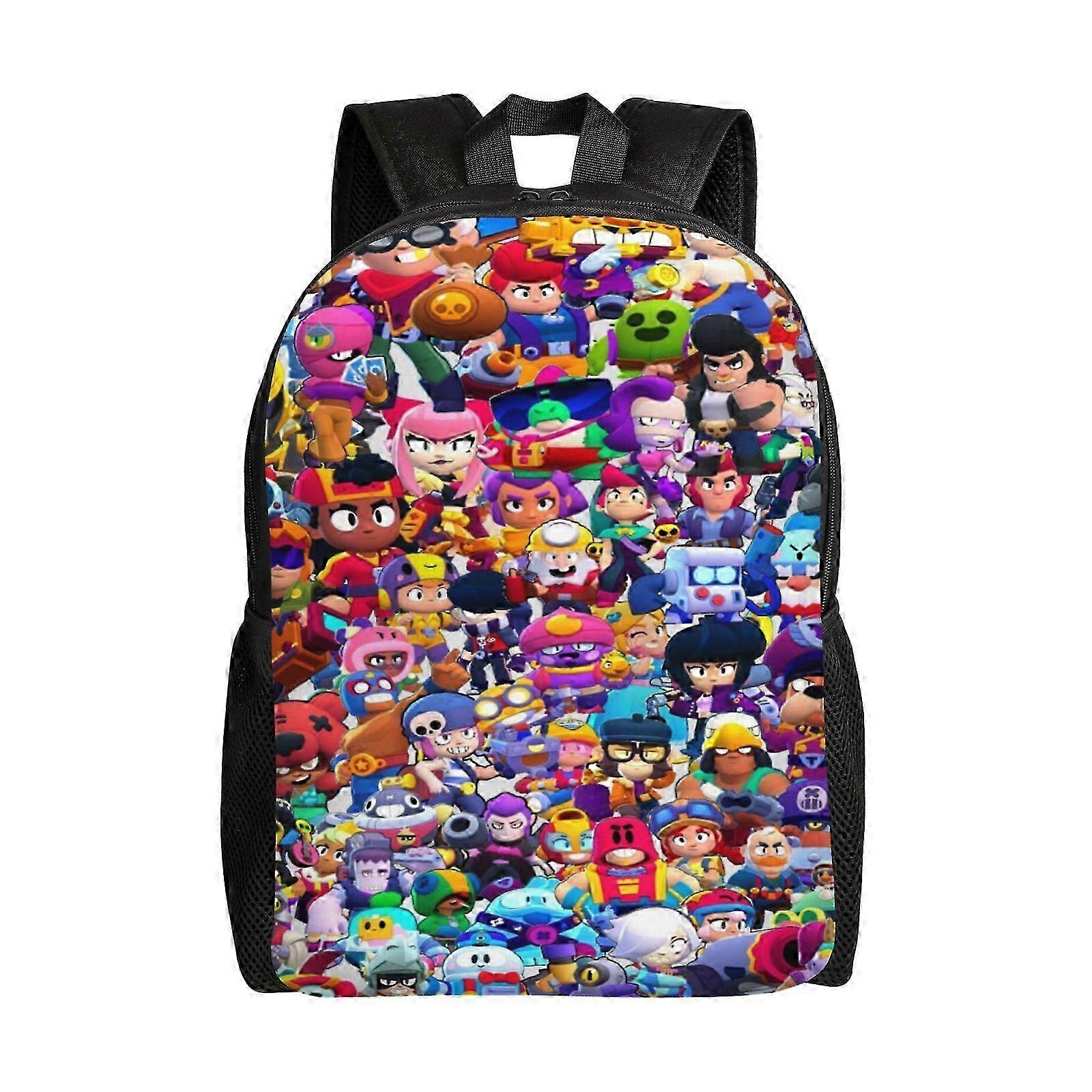 2025 v139 Brawl Colorful cartoon fighters Stars Backpack for Women, Fashionable Daypack with PVC Bottom, Large Capacity Bag for Laptop and Essentials