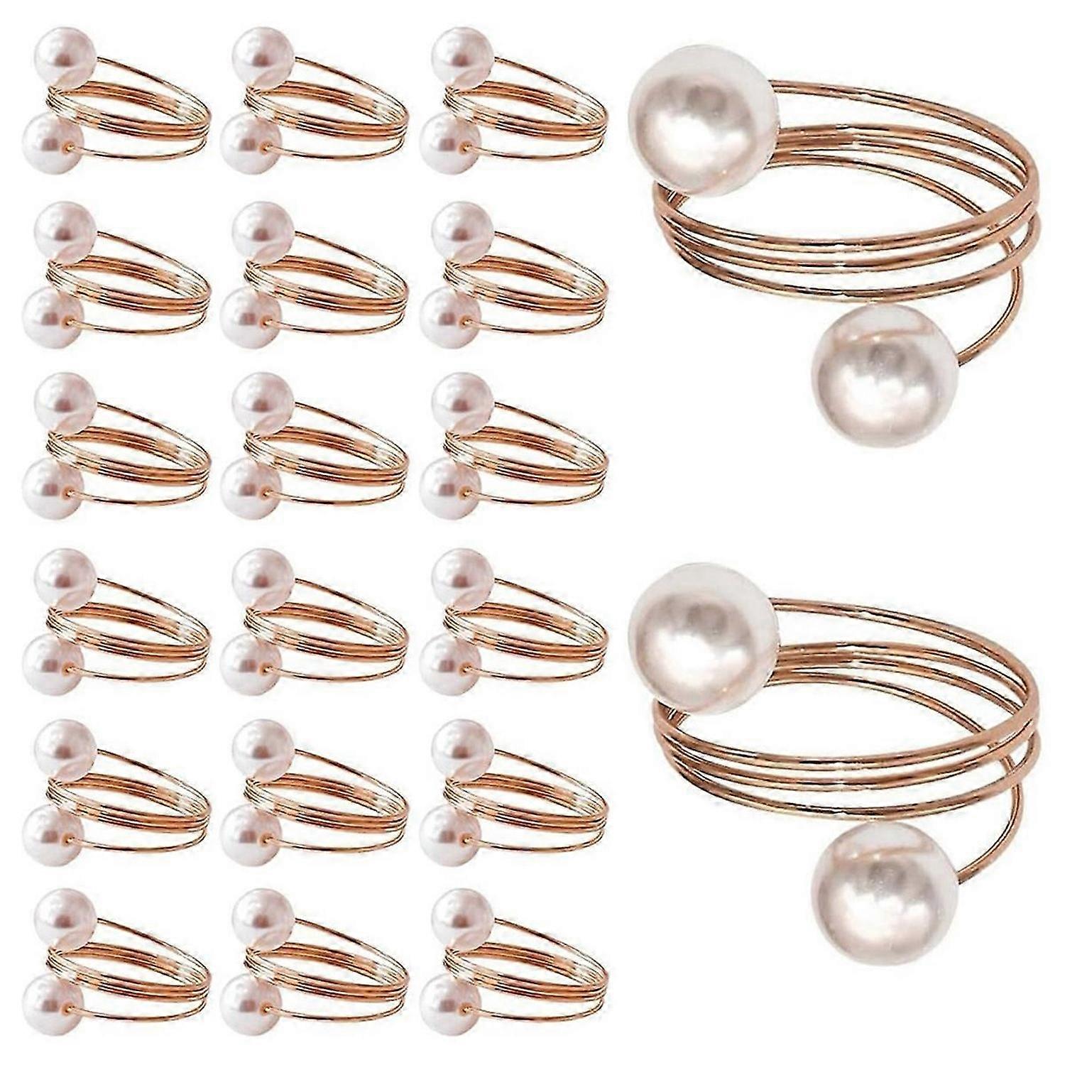 20Pack Napkin Rings, Pearl Napkin Ring Set, Metal Spring Napkin Holder Table Decorations, Napkin Rin