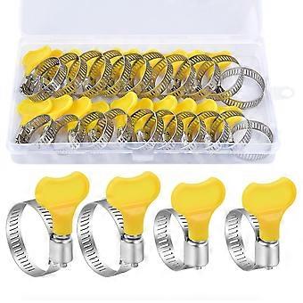 20pcs Adjustable Hose Clamps 16-25/19-29mm Stainless Steel Hose Clips With Rotating Handle Yellow Box For Washing Machines Pools Cars Gas Lines Etc