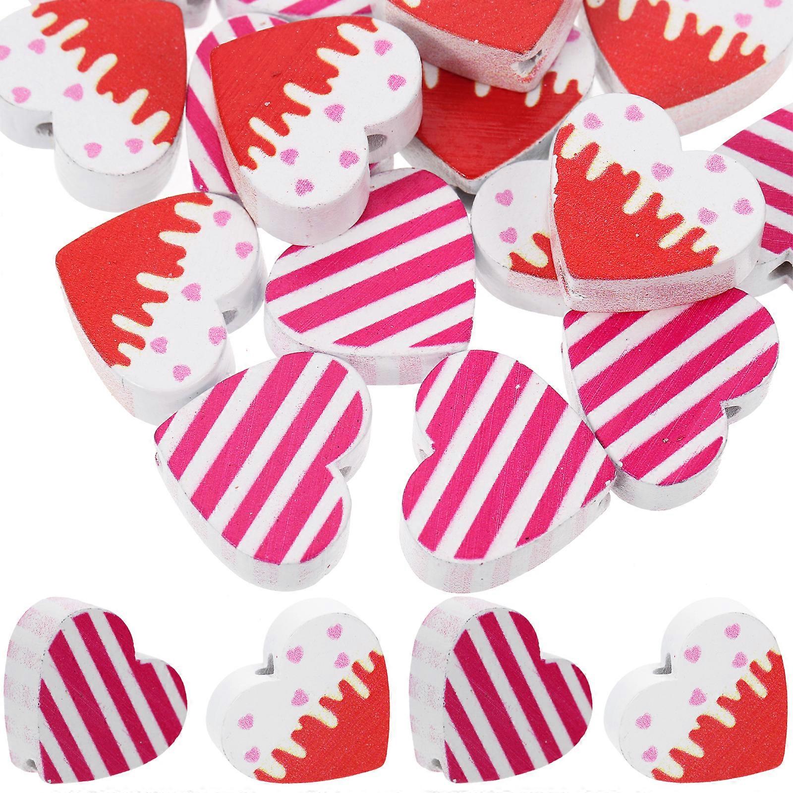 20pcs Heart Shape Wooden Loose Beads Wooden Spacer Beads String Bead Garland Material