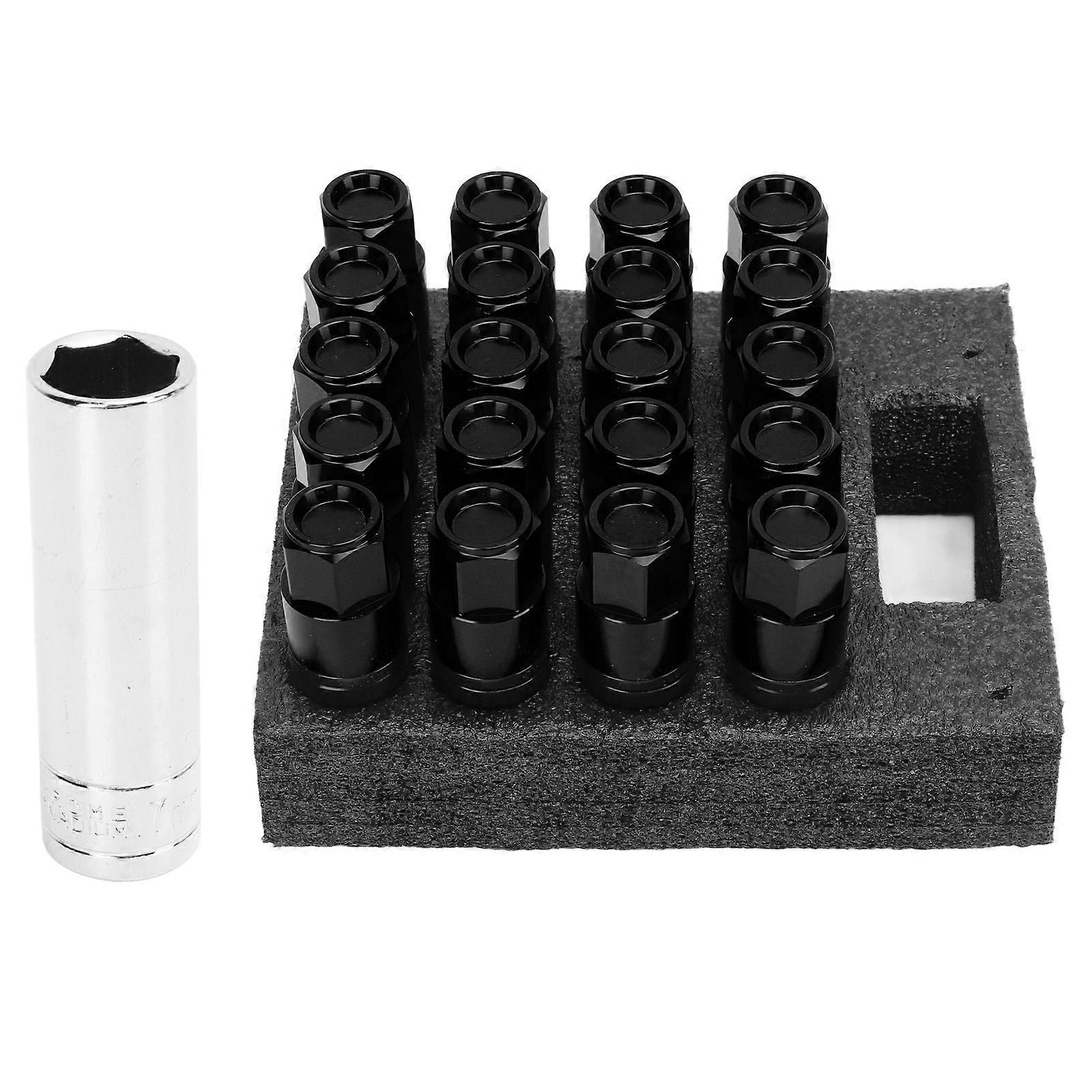 20pcs Wheel Lug Bolt Nuts with Caps M14x1.25 Cone Seat Steel Aluminum Alloy for Car Black
