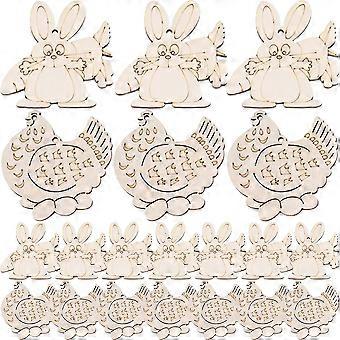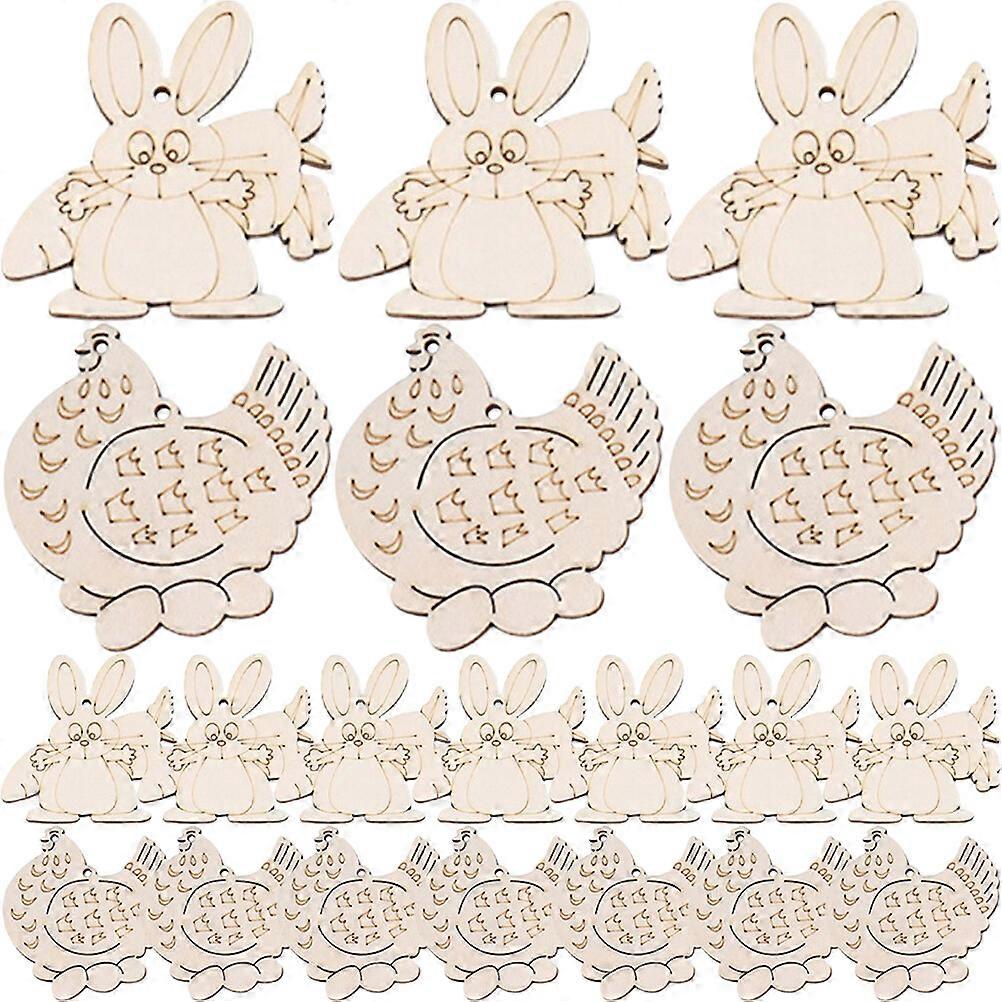 20Pcs Easter Unfinished Wood Chips Pendants Wood DIY Easter Crafts Adorable Unpainted Wood Chips