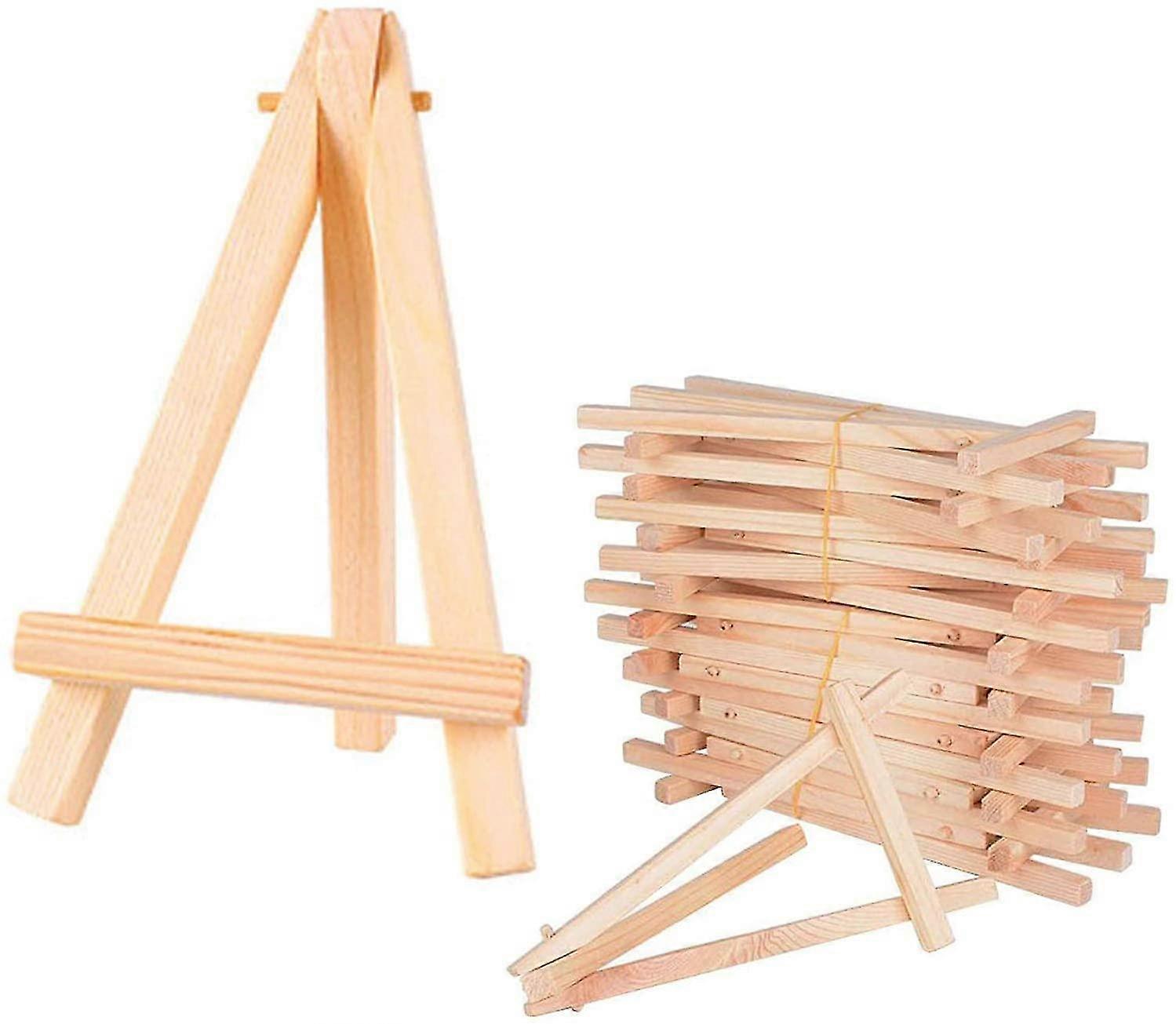 about this article Tripod Easel MaterialMade of good quality wood, lightweight, sturdy for a long time, durable, sturdy and well held. Size and Quantity The presentation easel is 9cm (3.5 inch) wide and 15cm (5.9 inch) high (standing); Foldable and lightweight, easy and convenient to store. The package includes 20 mini wooden easels, enough for your spare or replacement. Natural ColorThe color of these wooden easels is just the healthy color of natural wood, easy to stain and paint to any color you like. They are quite simple, but they could add a creative and personalized element to your table associated with Photos. Multi-Functional Wooden EaselCan hold A5 or smaller size paper, such as photos, memos, postcards, seat maps, menus, etc. Lighter or unframed items should be taped to prevent falling or loss. Fun and Pleasure Paired with mini canvas, the mini easel can be applied to hold mini painting showing activity or art party for kids, giving them fun and enjoyment of painting. Product description Mini Foldable Wooden Display Easels Features Made of natural wood, odorless and toxic, children can also use it to display objects. Graceful and elegant, each stick is well polished to ensure a smooth and safe surface. This small easel can be used as a small chalkboard, wedding chalkboard, photo holder, memo holder, table number holder, name holder, name holder, door holder, poster holder. The color of these wooden easels is just the healthy color of natural wood, easy to stain and paint any color you like, you can do craft projects with them. Warm Notice: Made of wood, lightweight, just a handy holder to hold small artworks such as your maps, smartphones, menus, pictures, etc. Specification: Product Name: Mini Table Easel Material: natural wood Dimensions: 15.*9cm (folded state) Function: wooden display stand, decoration, menu holder, photo holder, mobile phone holder The package includes: 20 x Mini Wooden Easels RemaASDue: 1.Small wooden easel, do not place it on too smooth or steep surface to avoid unstable stand. 2.Can hold A5 or smaller size paper. Lightweight, frameless items should be glued to avoid the risk of falling or loss.