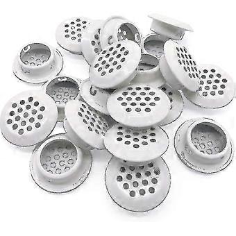 20pcs 25mm Stainless Steel Round Soffit Vent Covers with Louver for Kitchen, Bathroom, Cabinet & Wardrobe Air Circulation (White)