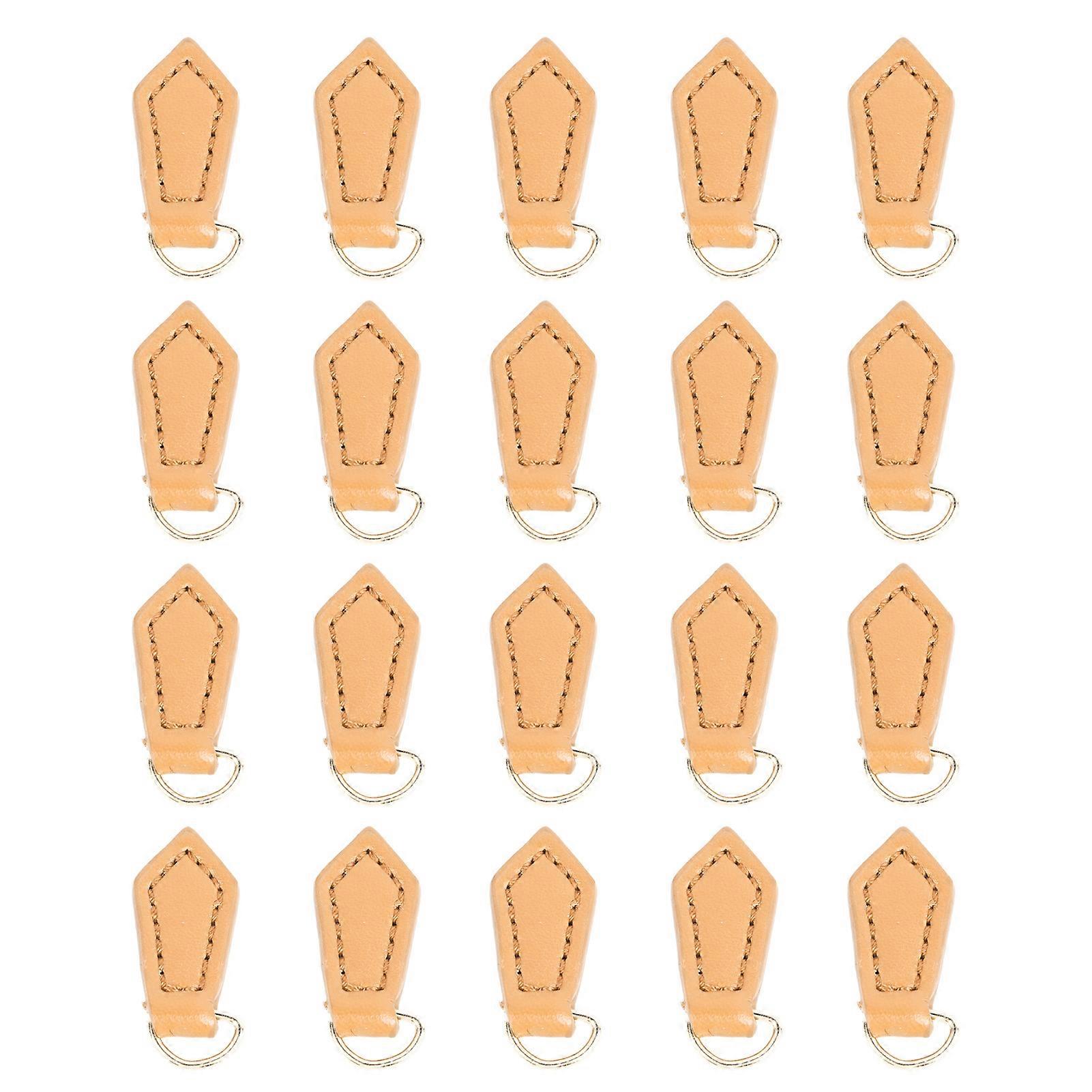 20pcs Rhombus Genuine Leather Zipper Pull Handcraft Zipper Tags Zipper Head Replacement for Handbags Suitcases Luggage Maize Yellow Gold D Ring