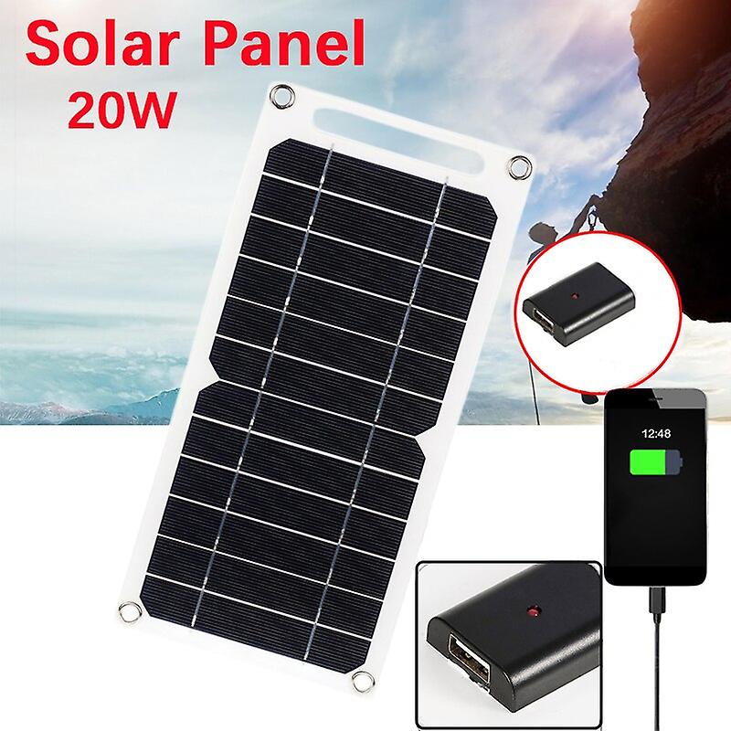 20w 5v Outdoor Monocrystalline Solar Panel Usb Solar Cell Phone Charger Waterproof Hike Camping Portable Cells Power Bank Panels