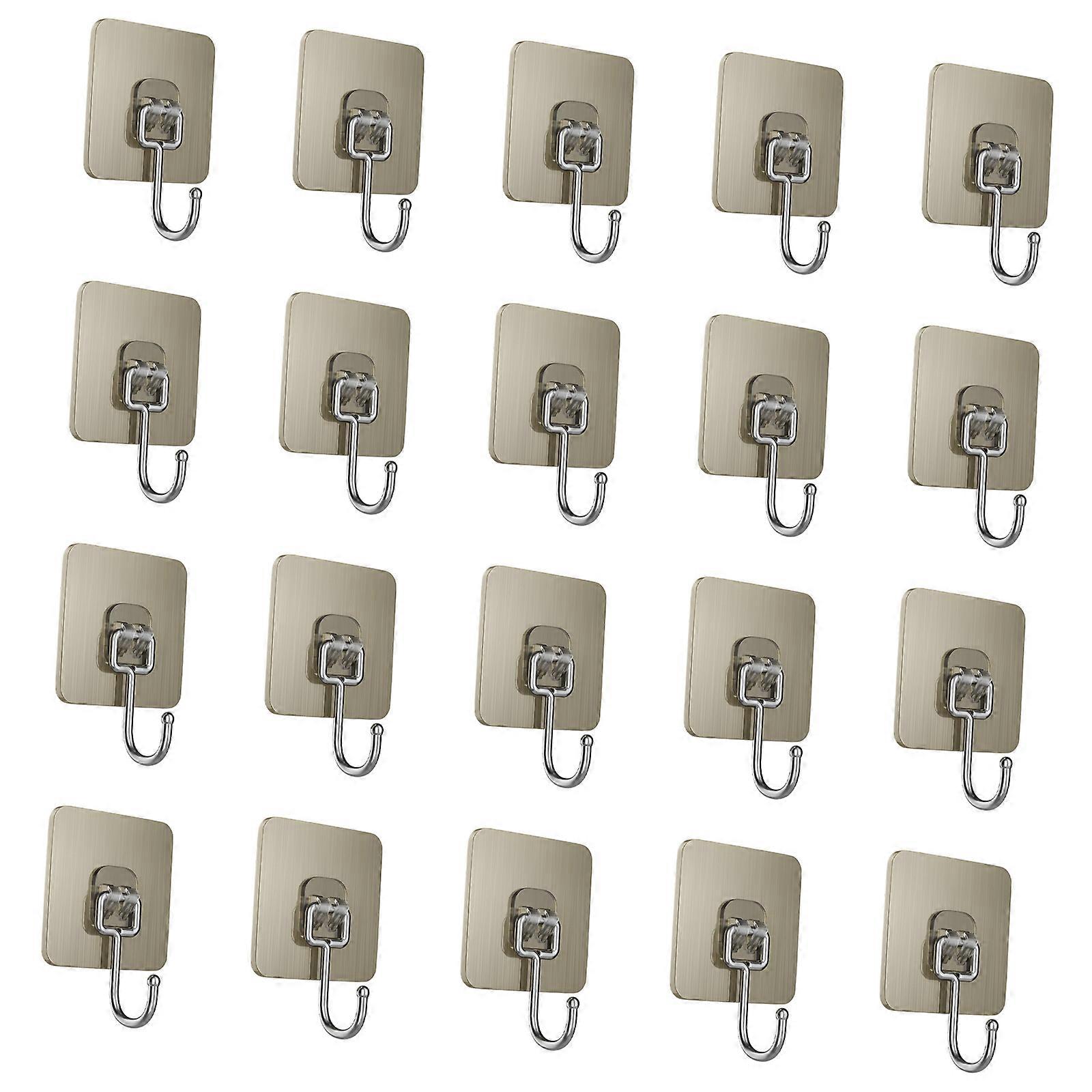 20X No Drill Bathroom Hooks Industrial Strengthes Adhesive Stainless Steel Hangers for Wet Area 35lb Weight Limit Gray