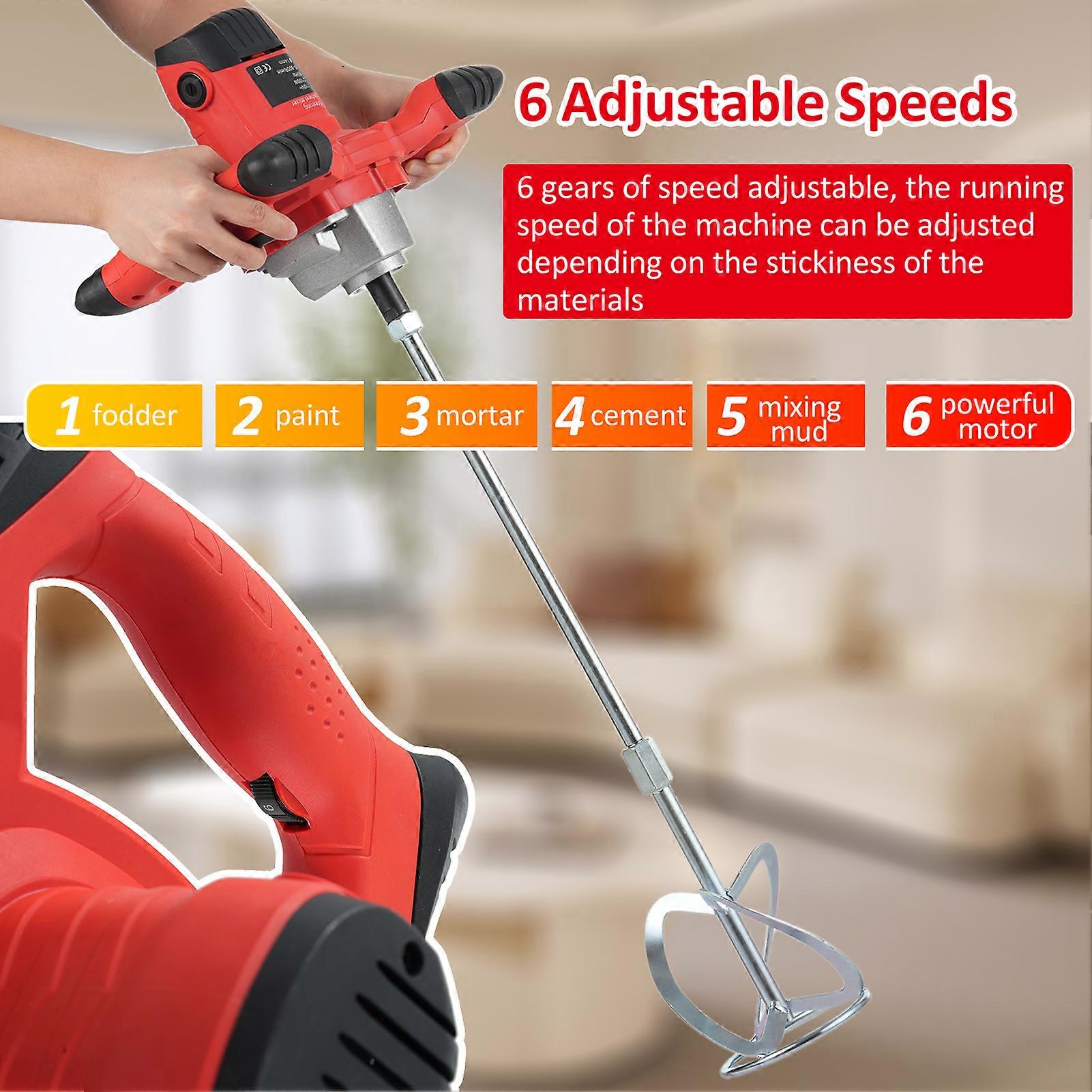 2100W Electric Mixer 6-Speed Yellow 801x320mm with 2 Rods Set