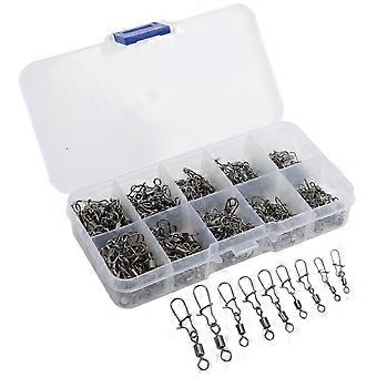 210pcs Fishing Swivels Snaps Set Stainless Steel Rolling Barrel Swivel with Safety Snaps Fishing Line Connector