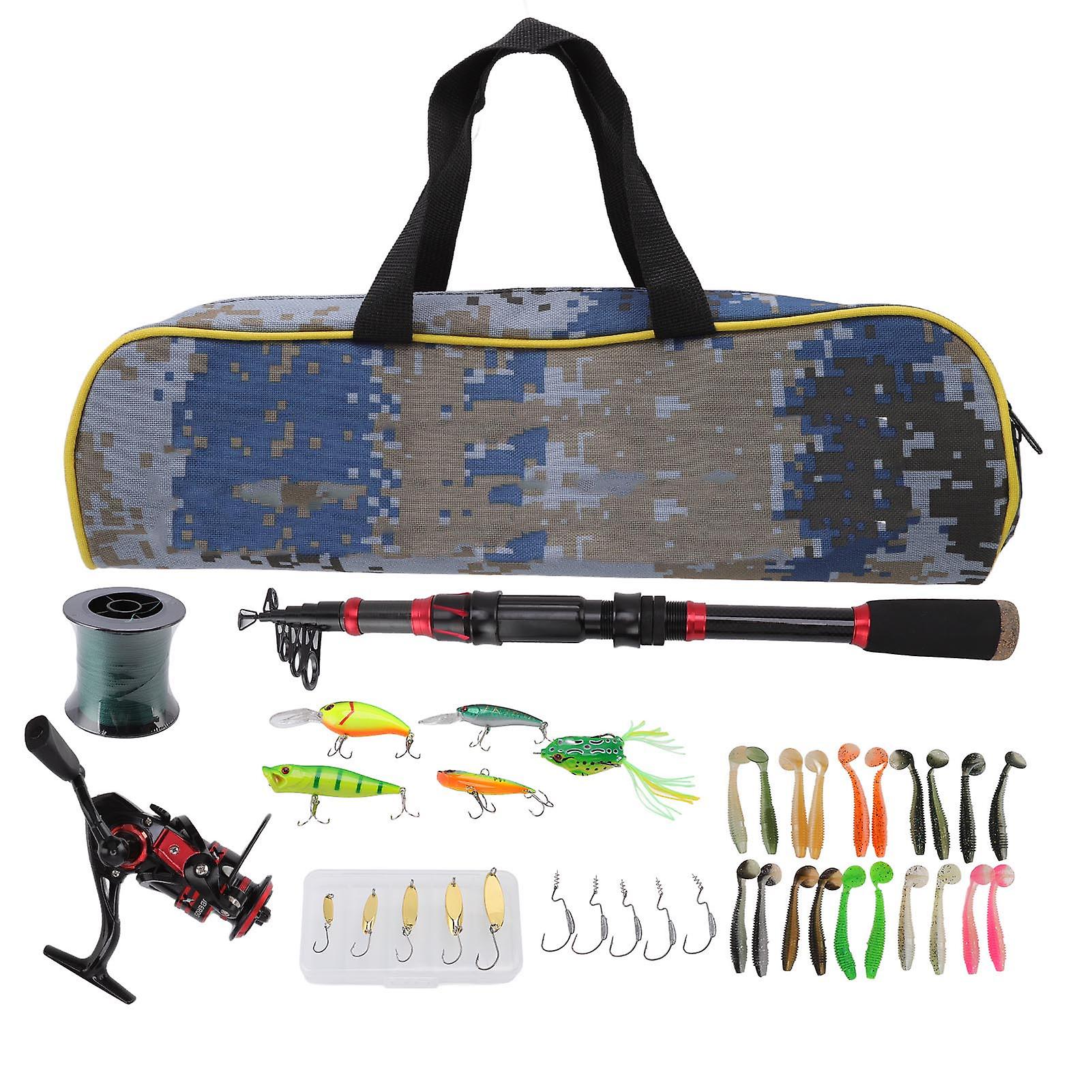 1、Retractable Length: This fishing rod has a retractable design so you can adjust its length to fit in your bag. It is portable enough to carry around. 2、Carrier Bag: This fishing rod comes with a carrier bag that makes it easy to carry the rod and all the other accessories with you when you are out fishing. It can also protect the rod and fishing gear from damage. 3、Multiple Accessories: This is a fishing rod and reel combo kit that includes a variety of different lure accessories for different fishing situations. It can meet your multiple fishing needs. 4、Both for Novice and Professional: The complete fishing kit is ideal for novices and professionals alike. It is lightweight and portable, making it very easy to carry. 5、Nice Gift: It is the best gift for fathers, sons, husbands, boyfriends on holidays and birthdays. It can bring you and your family a better fishing experience. 1 x Fishing Rod1 x Fishing Rod Storage Bag1 x Fishing Reel20 x Soft Bait5 x Fake Bait5 x Fish Hooks5 x Sequin Hooks1 x Sequin Hook Storage Box1 x Fishing Line1 x Fishing Tackle Bag Item Type: Fishing Rod KitMaterial: Carbon, Wood ChipsWeight: Approx. 890g/ 31.39ozSize:Rod Full Length: 2.1m/ 82.68inRod length after shrinkage: 38.5cm/ 15.16inLine: 100m/3937inRotational Speed Ratio: 5.2:1Winding Volume: 0.22mm-180m 0.28mm-110m 0.30mm-90m