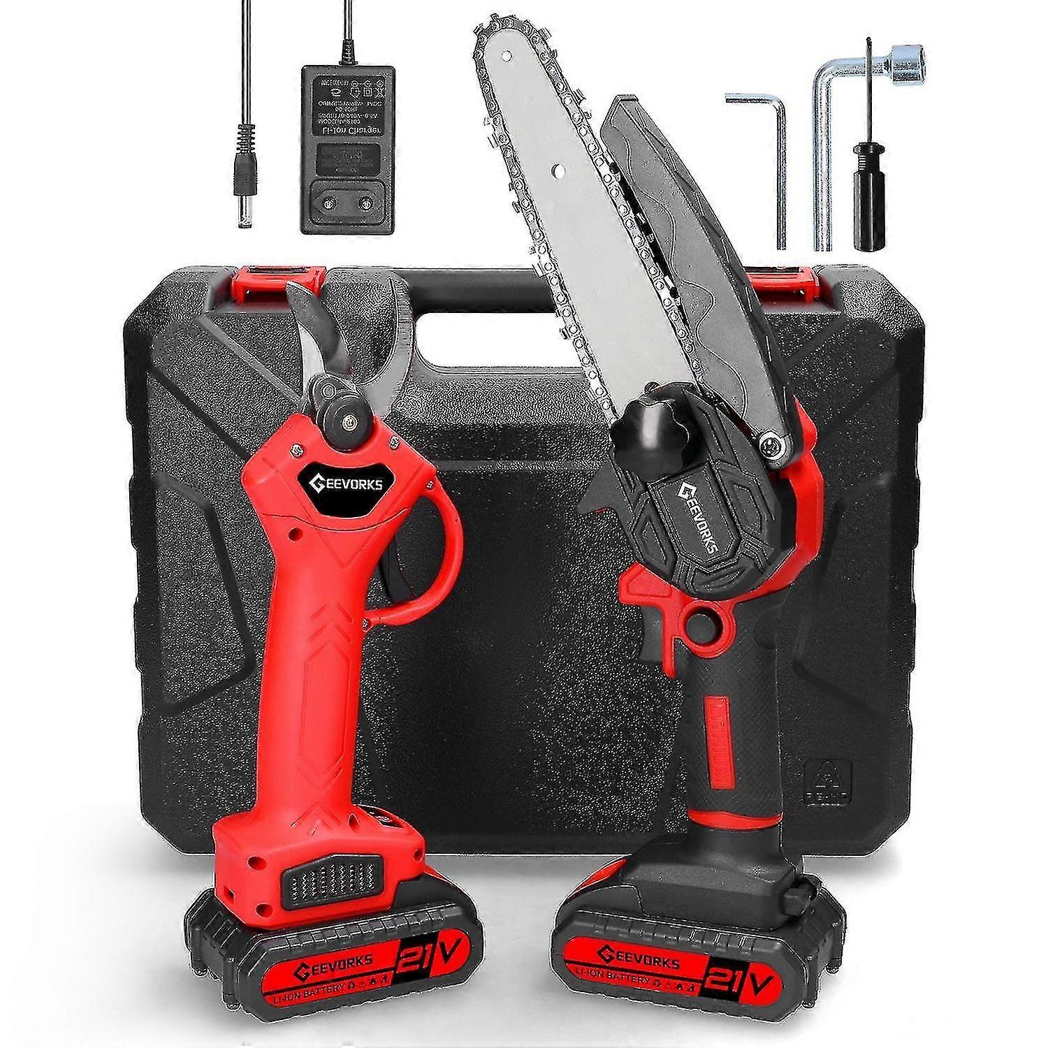 21V 6 Inch Portable Electric Chain Saw and 30mm Cordless Pruner Set for Wood Splitting Cutting