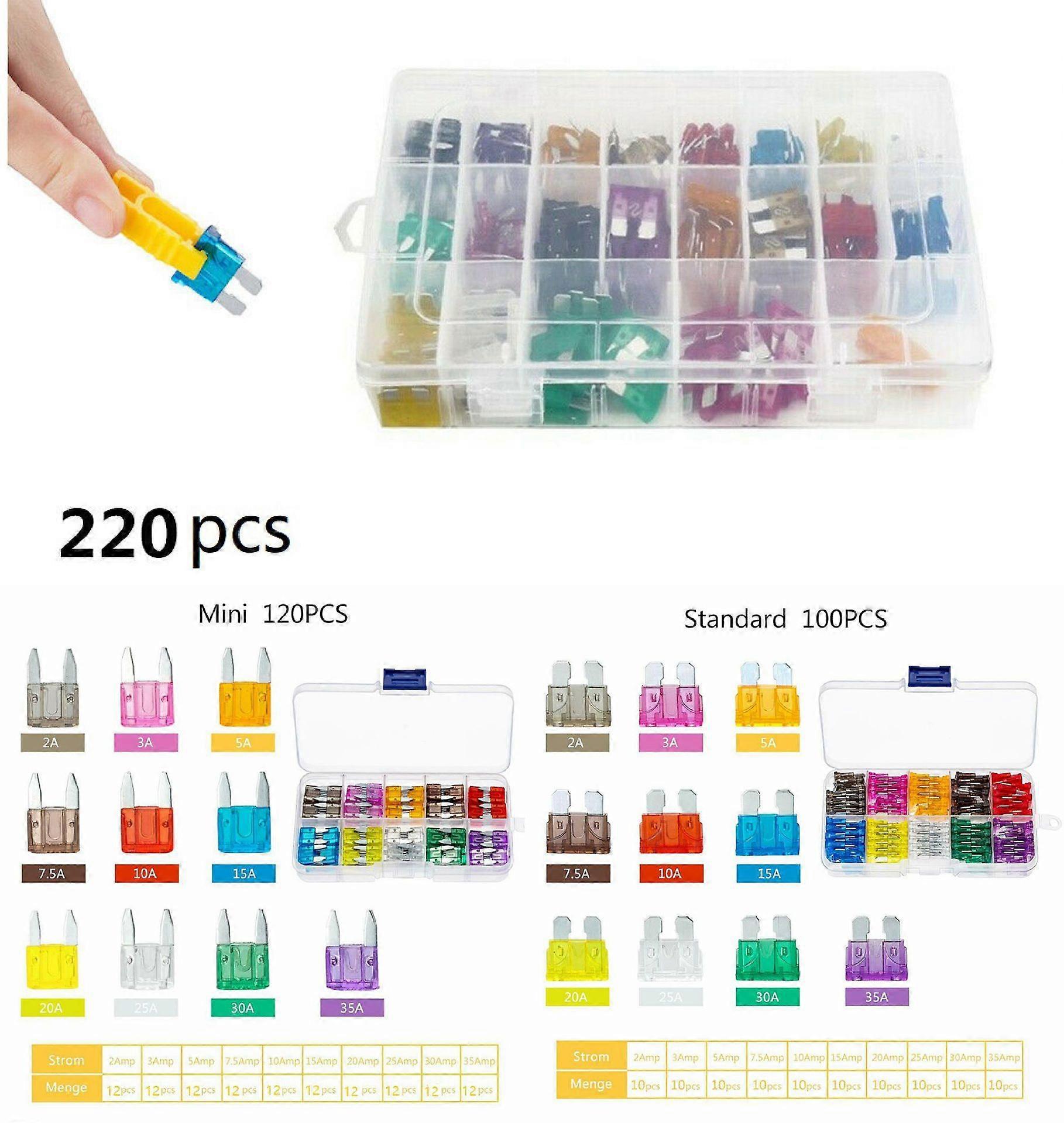 220pcs Plastic Box small medium size mixed car spare 11mm + 19mm insurance sheet 2 - 35A fuse