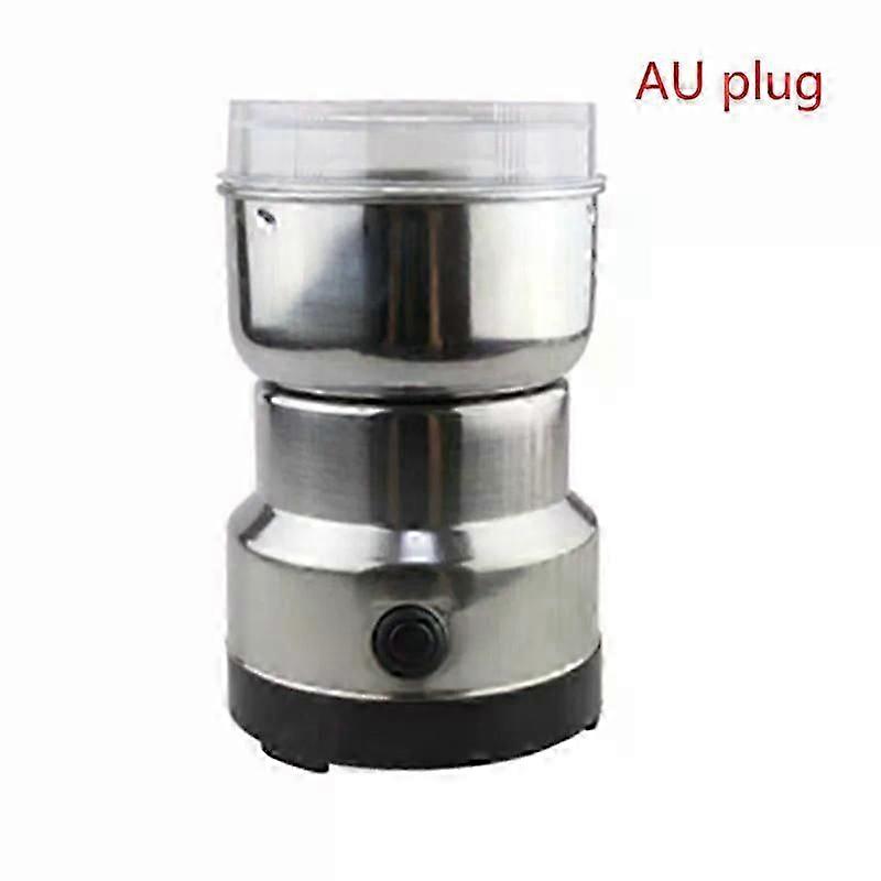 This is a household electric grinder, made of durable stainless steel, copper core motor, better quality With lovely transparent cover, easy to use and clean Convenient and safe Small and beautiful design, very suitable for families and restaurants New seal, better seal Multifunctional grinder, cereal, legume, condiment DIY your favorite coffee or other food, best life assistant Indirect touch switch, press and hold the switch to start, release and stop Ten second fast grinding Temperature control protection, overload will automatically cut off the power, after cooling, it can be used again Specifications: Condition: 100% Brand New Material : Stainless steel Power: 150W Voltage: 220V/50HZ Capacity: 50-400ML (about 150G food) Size: Diameter 10.5cm Height 17cm Package Included: 1 x Electric Grinder1 x User Manualplug adaptor*1 Notes: This product is not washable, just wipe it with a wet cloth. Touch the switch indirectly, press and hold the start, release and stop. Only grind dry materials, not wet food. During use, you must press and hold for about 5 seconds, stop for 1 second, and then continue working, so repeat several times to reach the required grinding level.