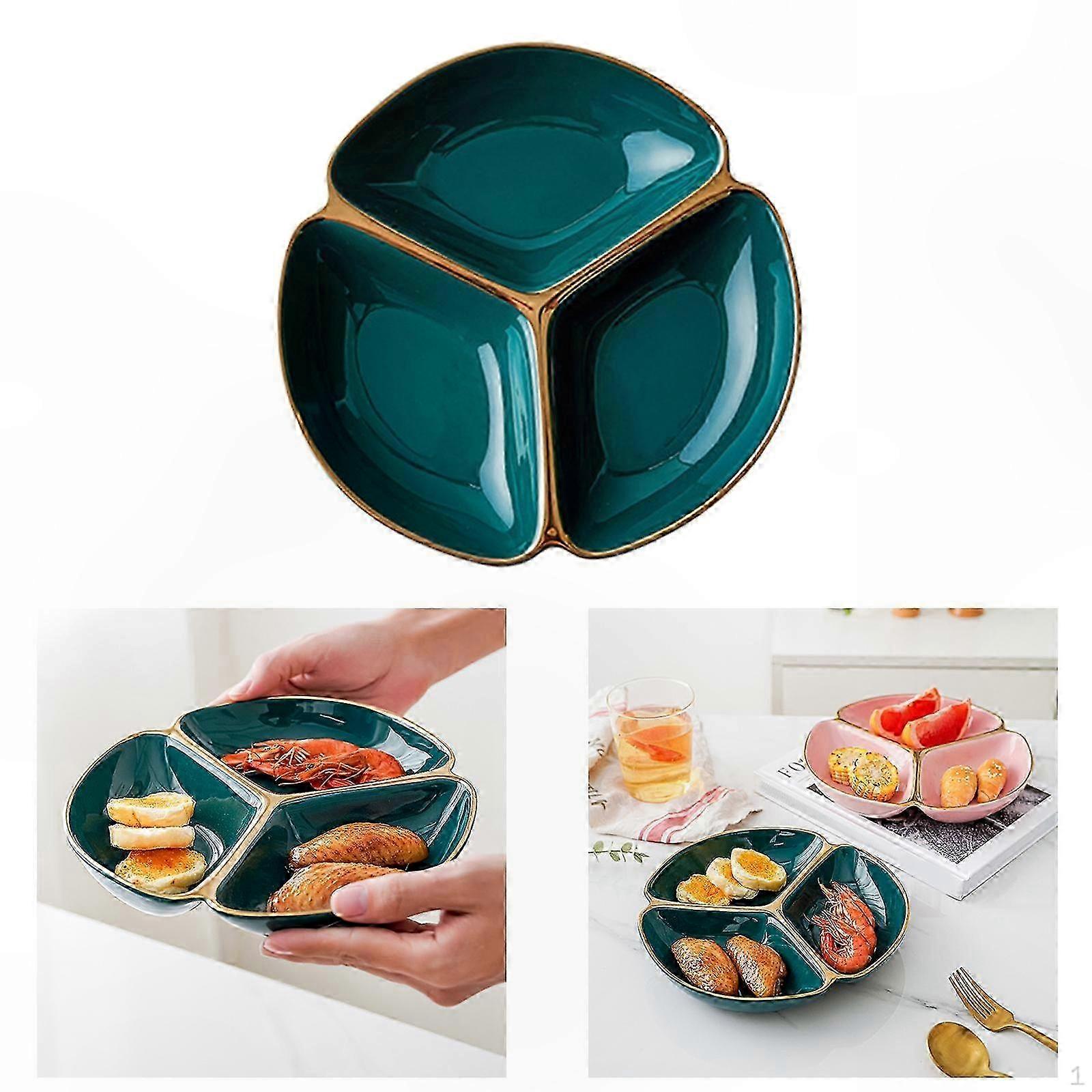 22.9cm Ceramic Divided Plate with 3 Compartments for Meals