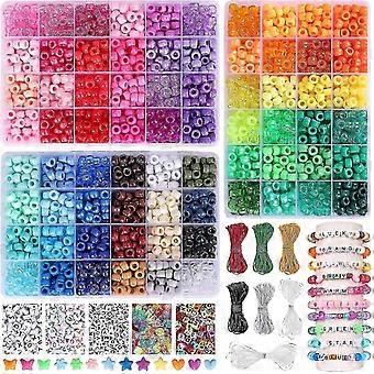 2350pcs, 64 Colors, Pony Beads for Bracelet and Necklace Making, Rainbow Craft Beads and Elastic Strings Kit, Letter Beads Set for Girls