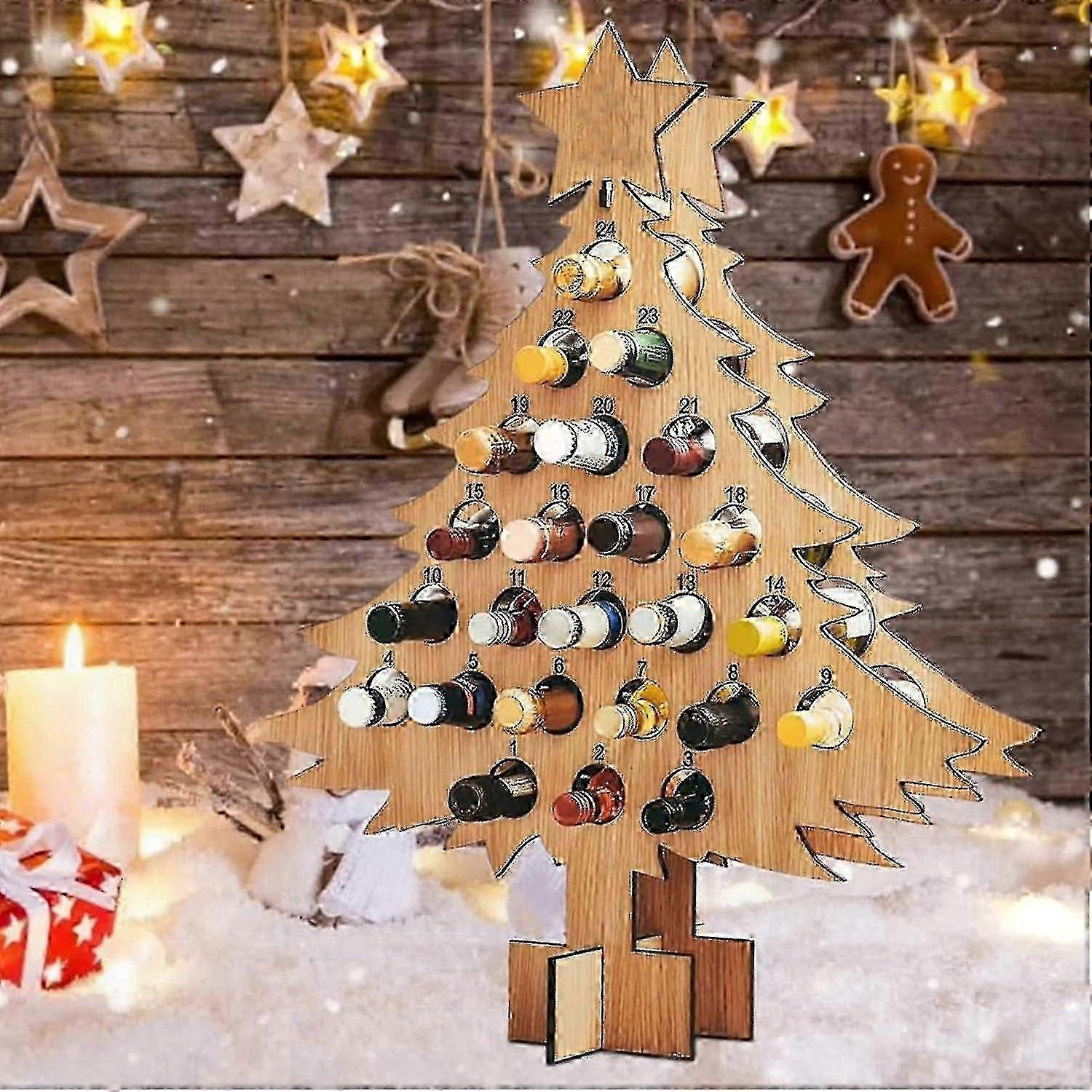 24-Day Holiday Wine Countdown Calendar, Festive Bottle Holder Stand, Christmas Tree Decor for Wine Enthusiasts