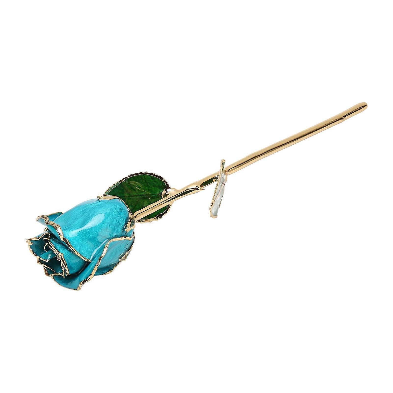 24K Gold Plated Rose with Stand Sky Blue Decorative Gift Ornament