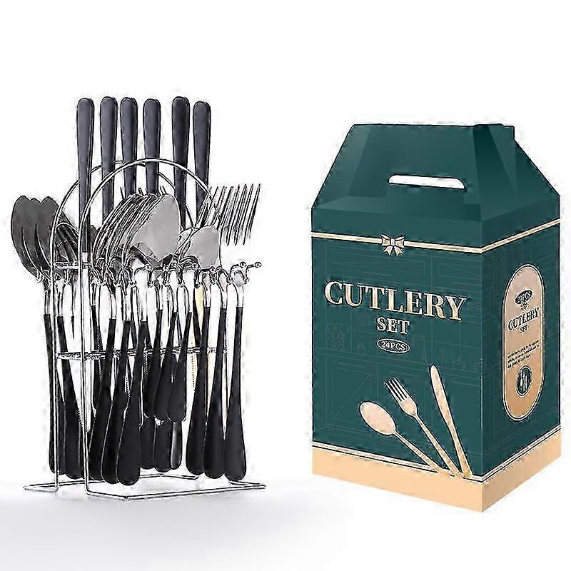 24pcs Stainless Steel Tableware Set for Western Cuisine - Fork, Knife, Spoon