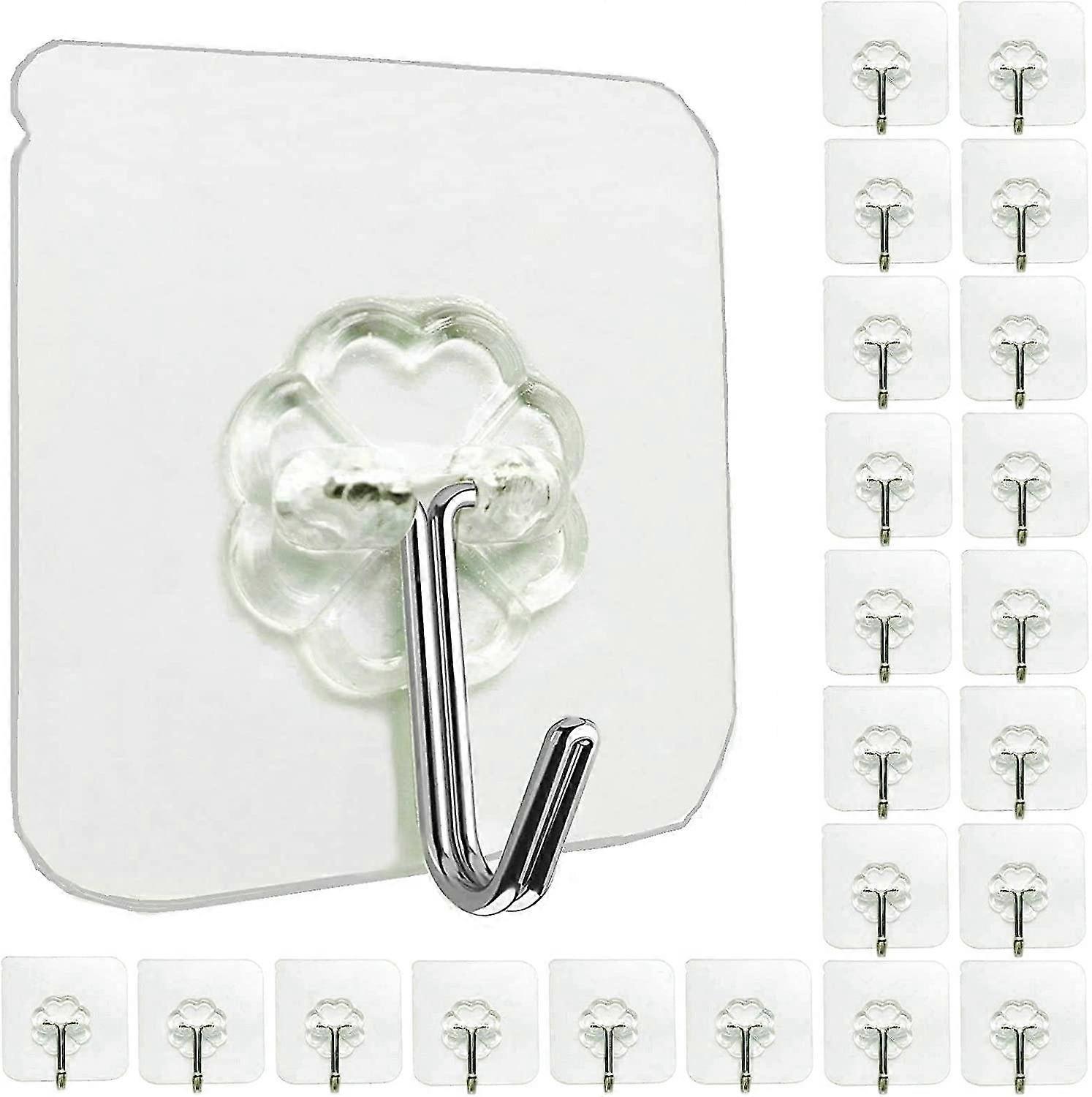 24 Pack Wall Hooks For Hanging Heavy Duty Self Adhesive Hooks 33lb(max) Waterproof Transparent Hooks For Keys Bathroom Shower Outdoor Kitchen Door Hom
