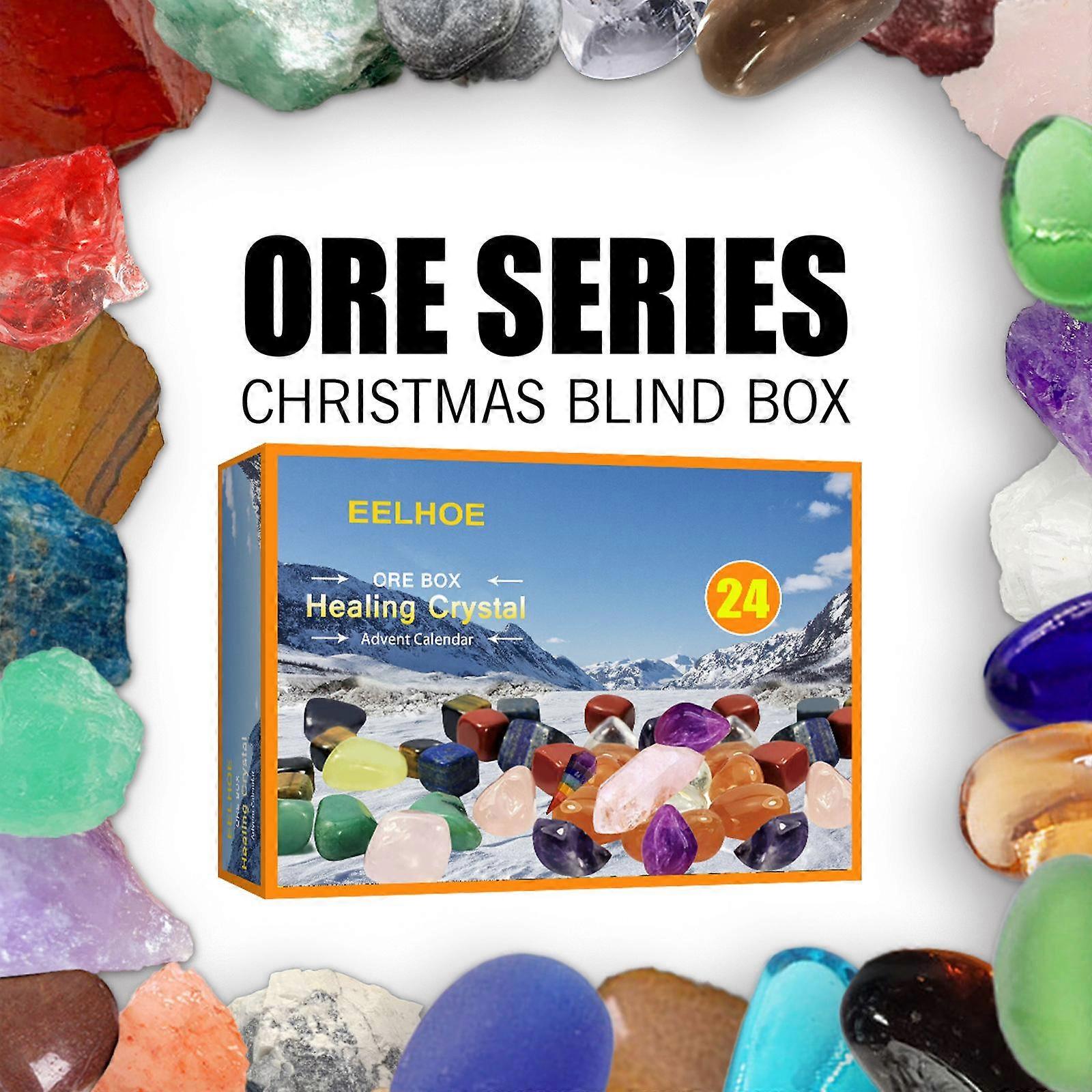24 Days Christmas Advent Calendar Toy for Kids 24 Box Gift Gemstones Home Decoration Ore Mineral Crystal Polished Stone