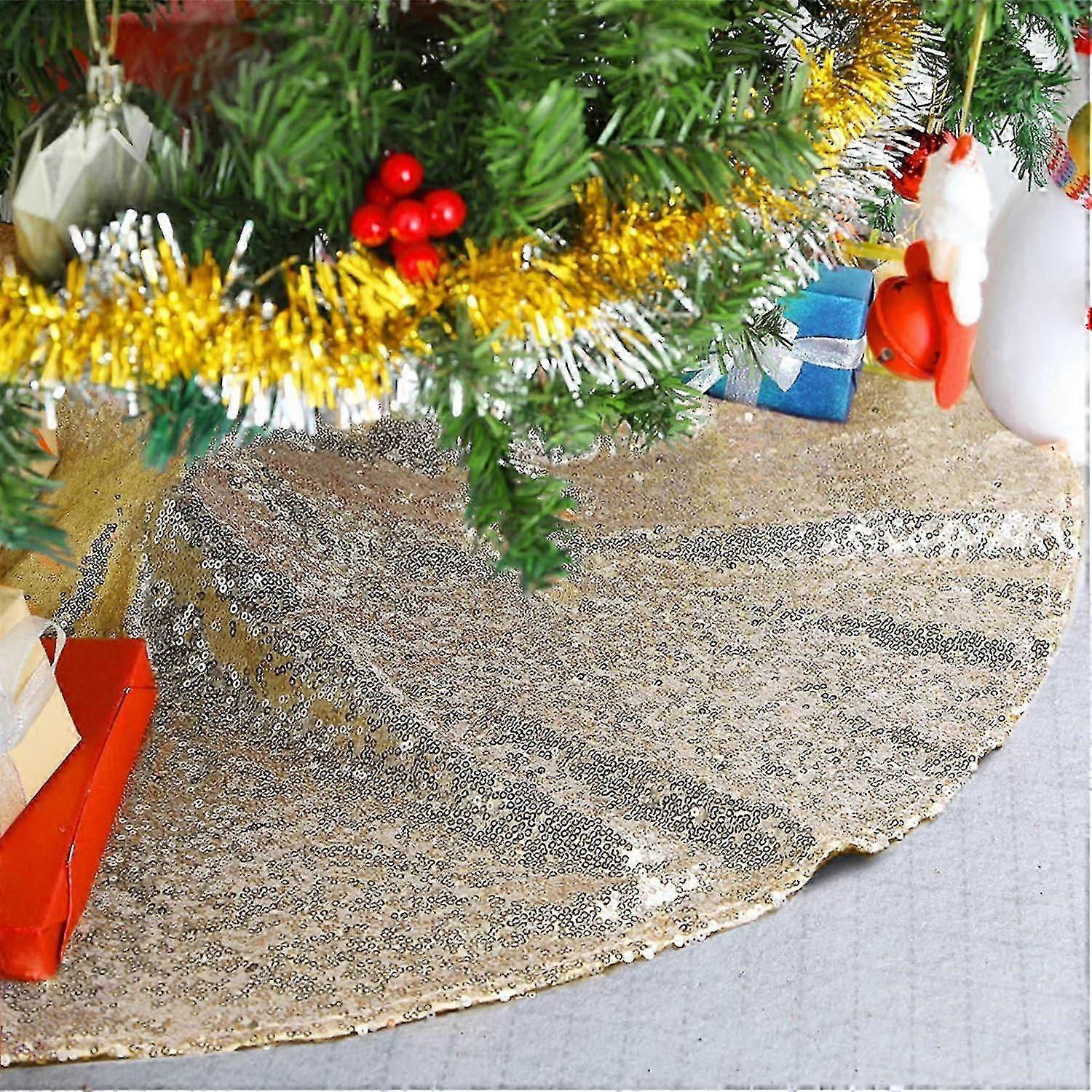 24-Inch Champagne Gold Sparkly Round Christmas Tree Skirts