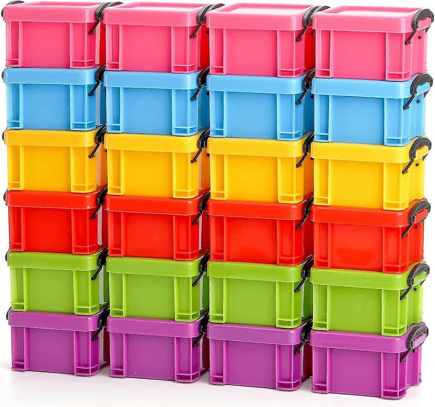 24 Pack 6 Colors Small Plastic Storage Container, Mini Plastic Latch Box With Lid Stackable Craft