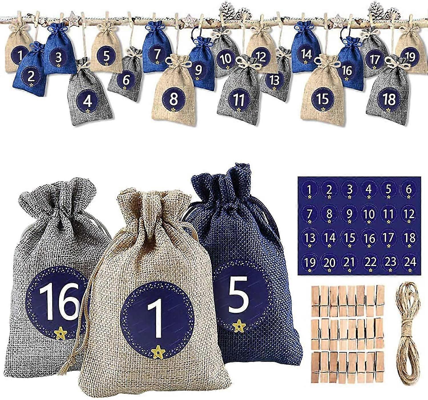 24 Fillable Advent Calendar, Cloth Bag Advent Calendar For Men Women Kids With 1-24 Pieces Stickers Diy Christmas Gift Bags