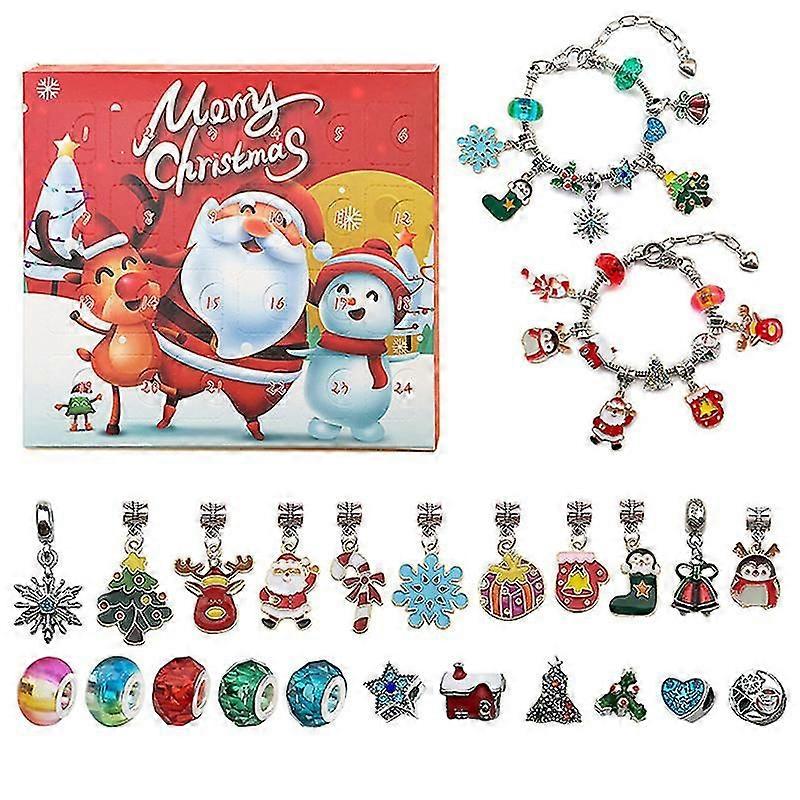 24PCS Necklace Pendant Christmas Countdown Calendar Blind Box Bracelet Gift Box Multicolor